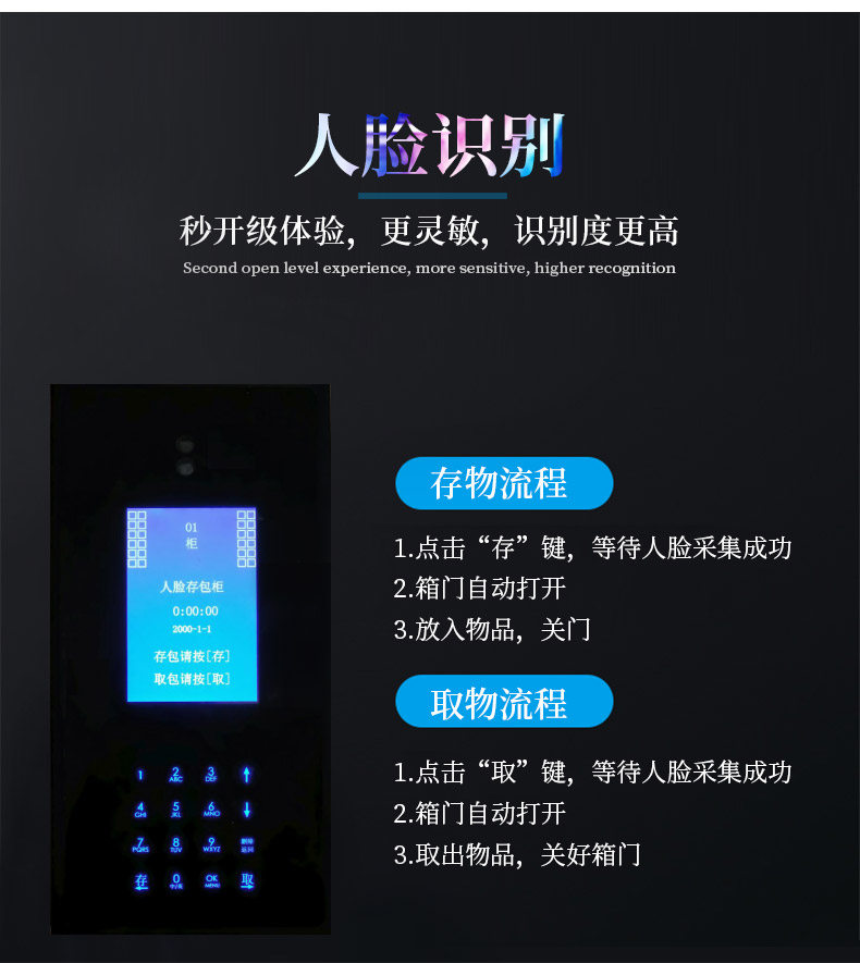 1.智能人臉識別:人臉識別精準采集,高效記錄,及時開門,提高客戶智能化存取體驗